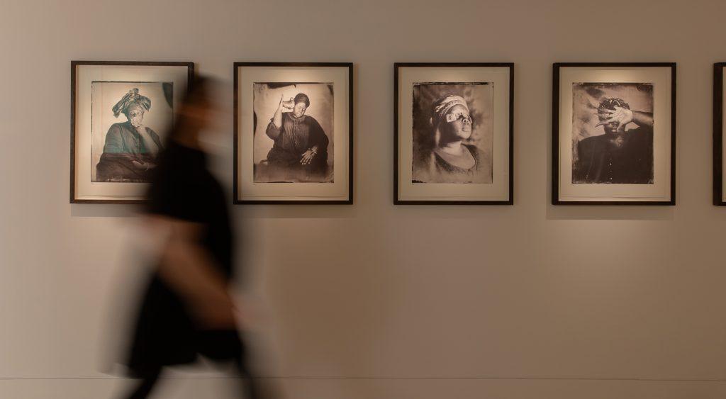 Drawing nearer to our own time, the path leads upwards into a gallery of contemporary art. Matt Collinshaw’s immersive installation ‘Eidolon’ is incredibly thought-provoking, with the massive iris constantly burning and renewing, a symbol of how faith can survive even in the worst circumstances. Thoughts of fire also dominate the work of Muslim photographer Khalifa Saye as she died in the tragedy of Grenfell Tower. Alone of all the artists, her voice is heard in a powerful-recorded interview since she can no longer talk through her work.