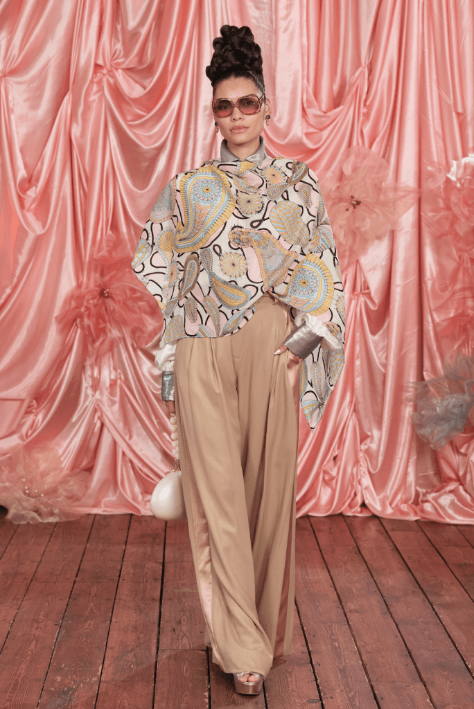 The colour palette for this season draws from the floral displays that adorned Latouche’s living room, featuring delicate shades of rose, mint, aqua, sage, lemon meringue, coco, and cream. This season, Paisley Rainbow prints make a debut in the collection, marking the return of prints for the first time since 2022. Latouche reveals that the cards and fragrant flowers that filled her home reminded her of Monet’s picturesque portrayals of the French countryside, adding a touch of beauty and nostalgia to her designs.