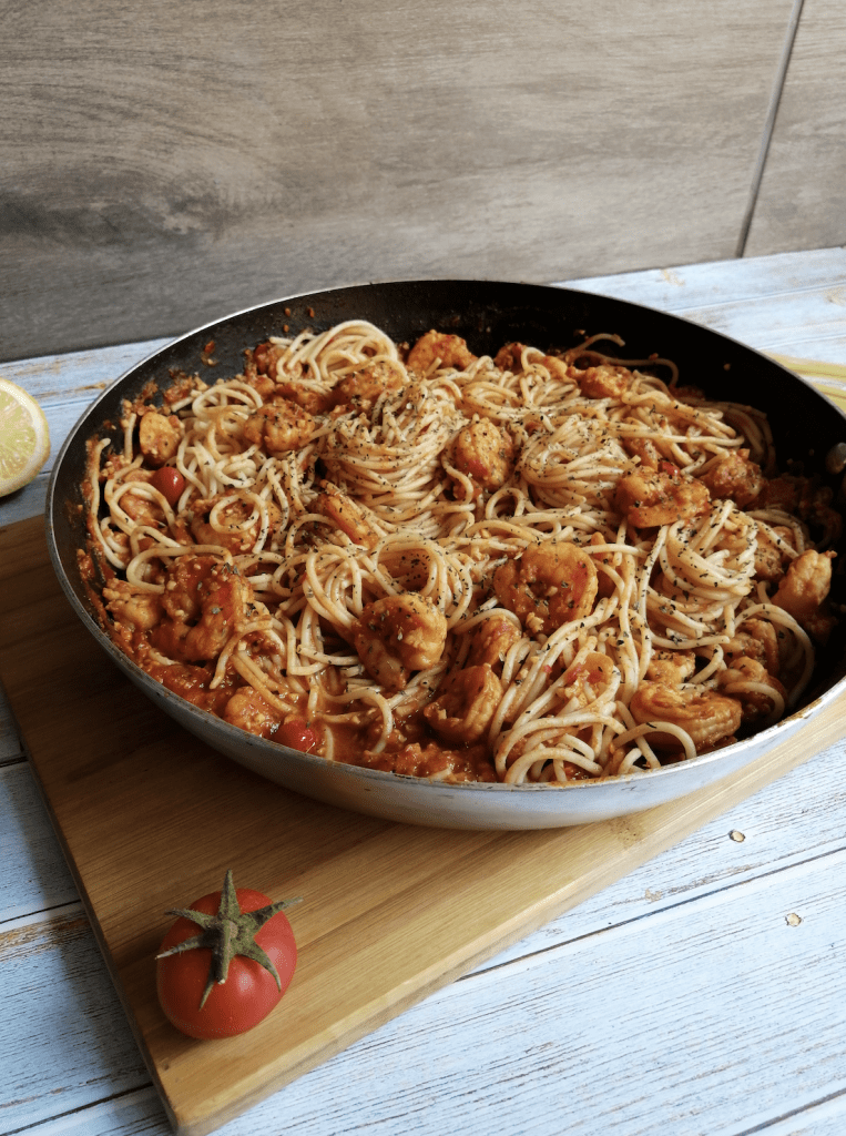 Don’t mind me, I’m just dreaming of Italy. This Sicilian-inspired prawn pasta recipe is pasta-bly my favourite at the moment. It’s so easy and comes together quickly, which is perfect for those days when you don’t want to fuss around the kitchen too much.